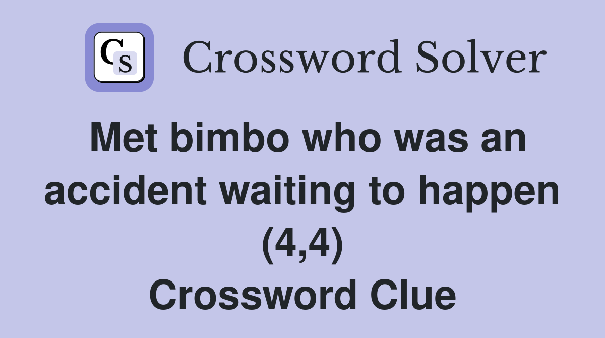 Met bimbo who was an accident waiting to happen (4 4) Crossword Clue