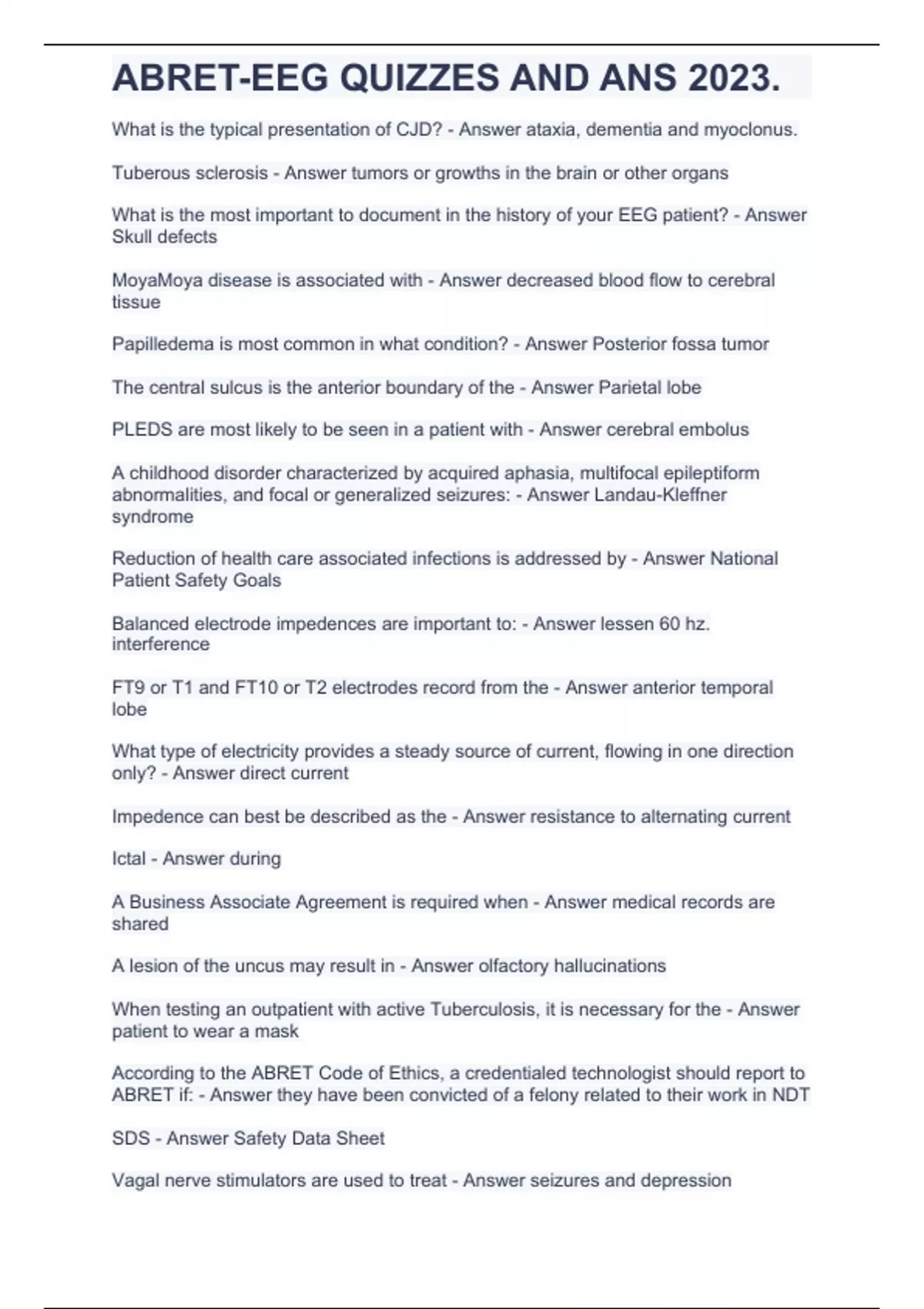 ABRET EEG QUIZZES AND ANS 2023 ABRET Stuvia US