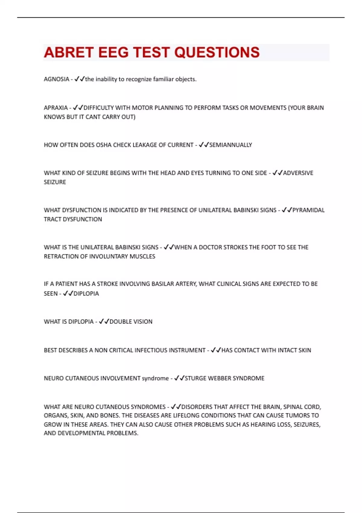 ABRET EEG TEST QUESTIONS WITH SOLUTIONS 2024 DocMerit