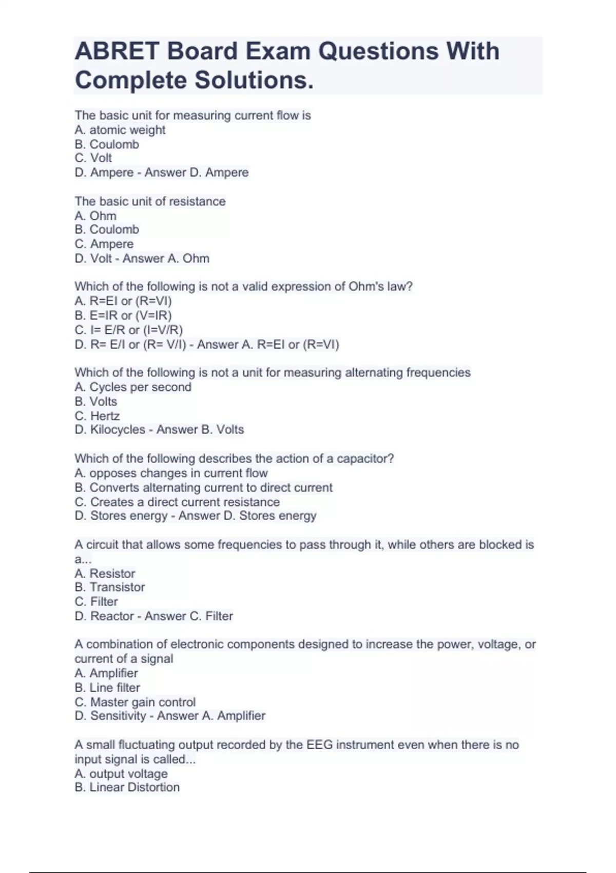 ABRET Practice Exam Part 1 Questions Answered (Latest Update 2024/2025