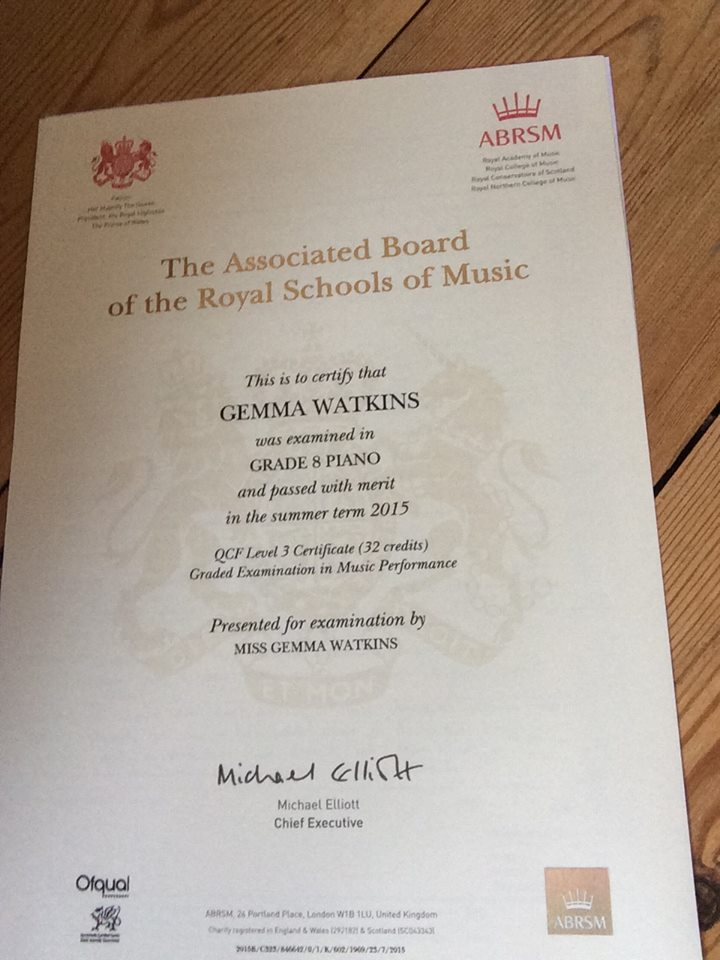 gemma abrsm grade 8 certificate Teachers and Artists Music Industry