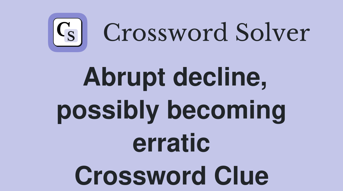 Abrupt decline possibly becoming erratic Crossword Clue Answers
