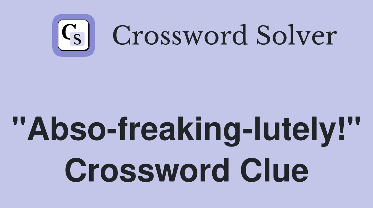quot Abso freaking lutely quot Crossword Clue Answers Crossword Solver