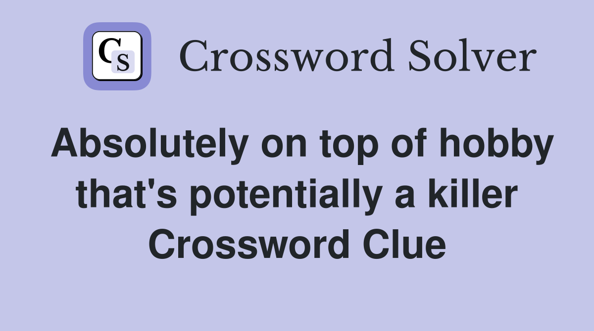 Absolutely on top of hobby that #39 s potentially a killer Crossword Clue