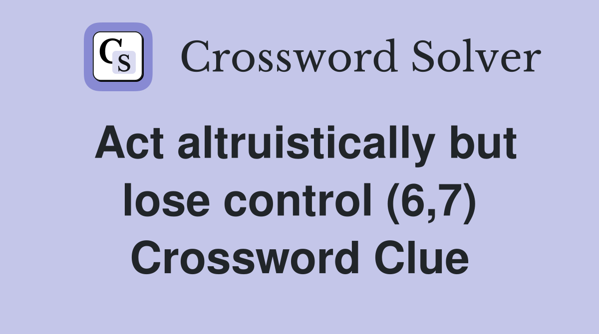 Act altruistically but lose control (6 7) Crossword Clue Answers