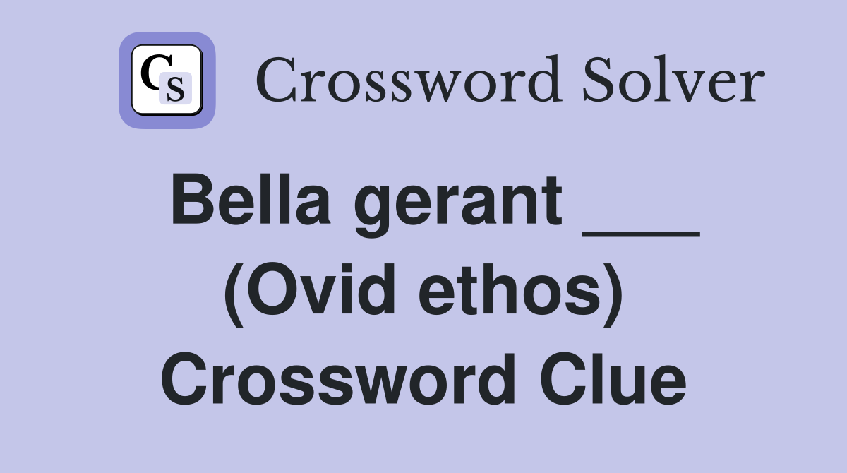 Bella gerant (Ovid ethos) Crossword Clue Answers Crossword Solver