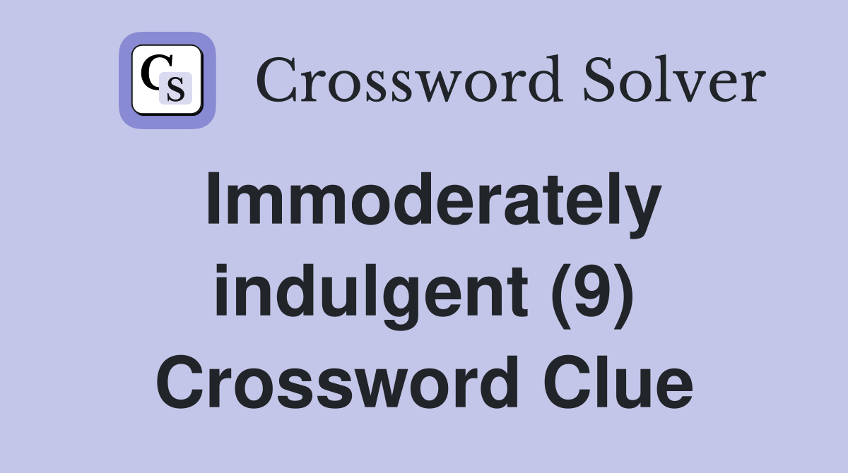 Immoderately indulgent (9) Crossword Clue Answers Crossword Solver