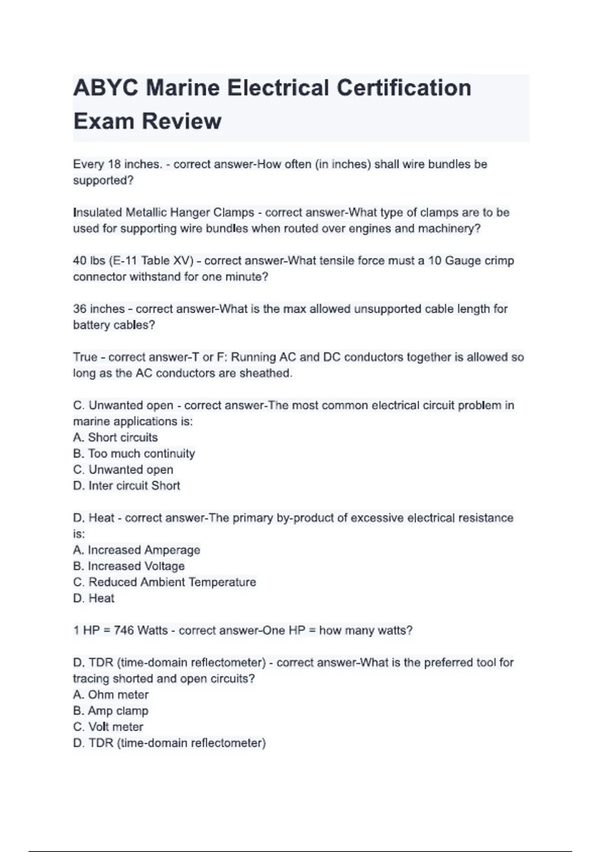 Abyc marine electrical certification exam Questions and Answers (2024 /