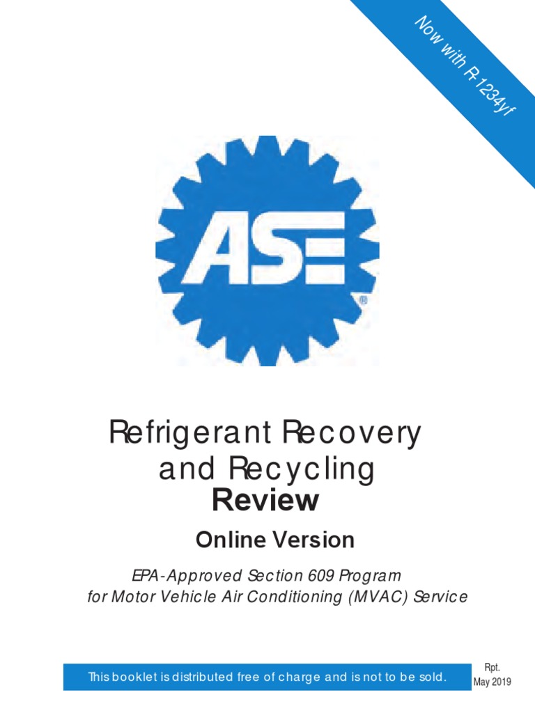 ASE Section 609 Training Manual 2019 PDF Chlorofluorocarbon Ozone