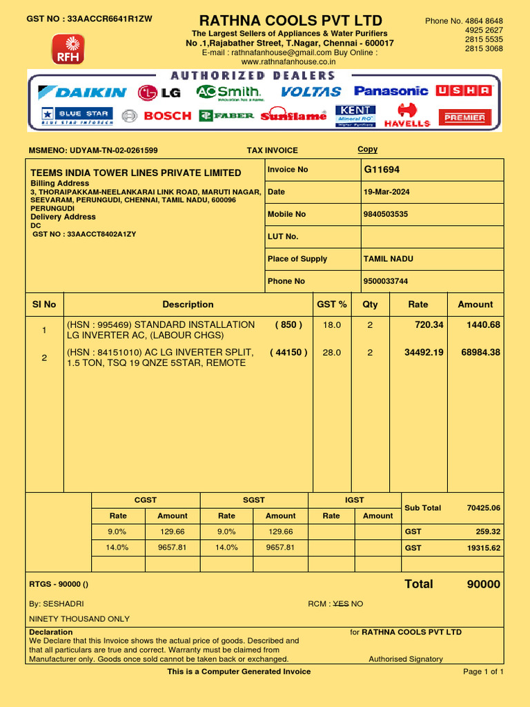 Sangeeta Ac service centre in 2025 Invoice template Invoice template