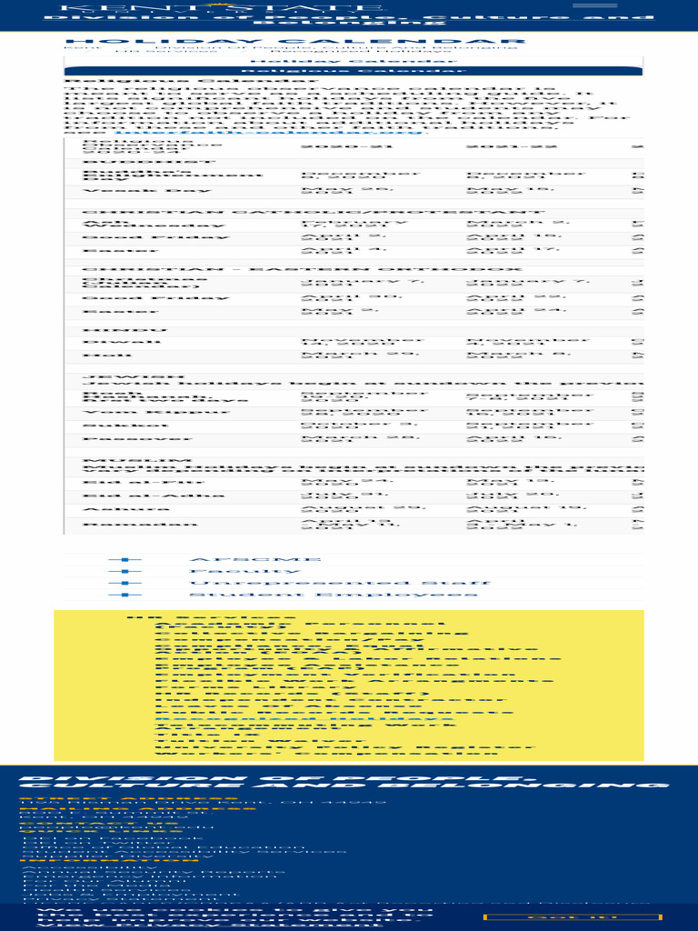 Holiday Calendar Kent State University PDF Holidays Calendar