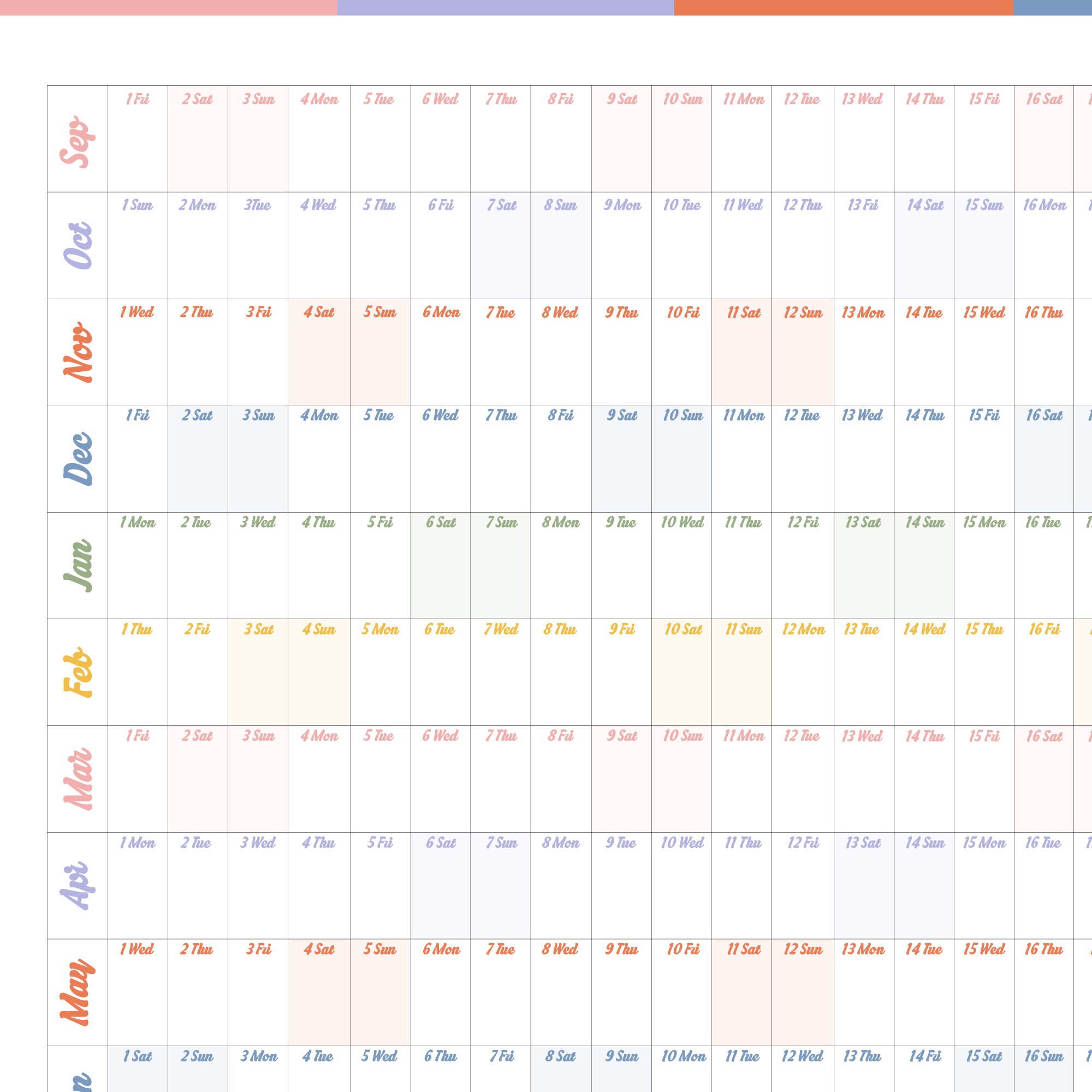 22 23 Printable Academic Monthly Calendar HORIZONTAL by Success in the
