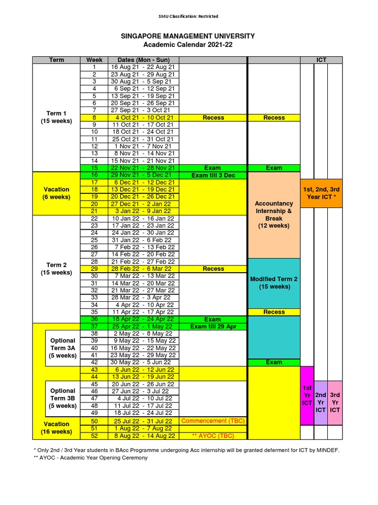 Academic Calendar SMU Undergraduate Singapore