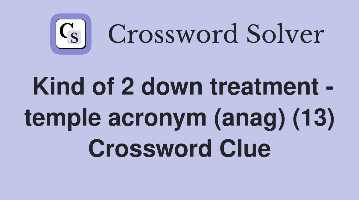 Kind of 2 down treatment temple acronym (anag) (13) Crossword Clue