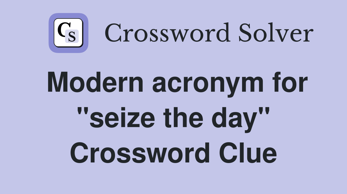 Modern acronym for quot seize the day quot Crossword Clue Answers Crossword
