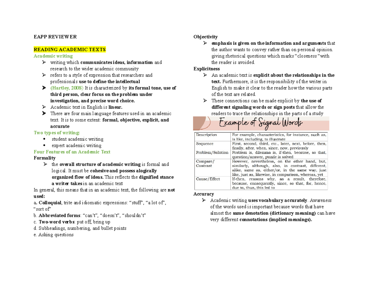 QUARTER 3 MODULES EAPP REVIEWER READING ACADEMIC TEXTS Academic