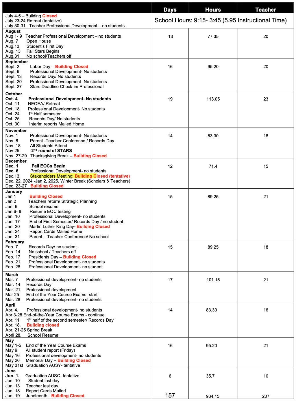 2024 2025 Calendar The Academy Charter School NY School for world
