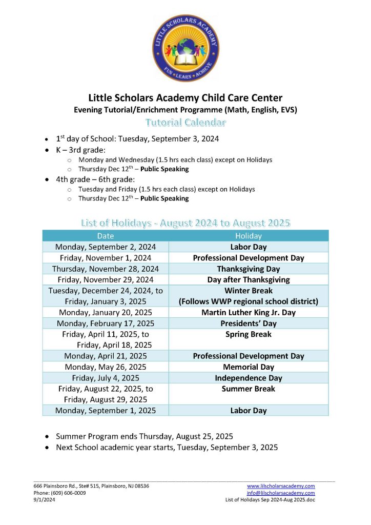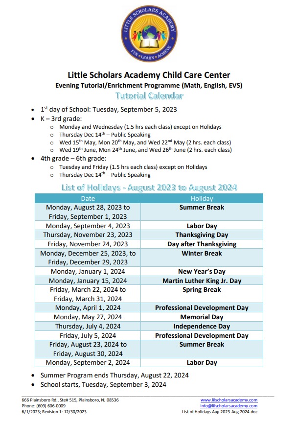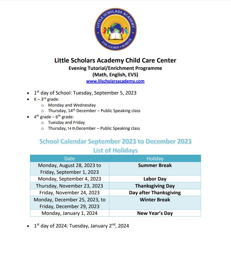 Tutorial Calendar Little Scholars Academy