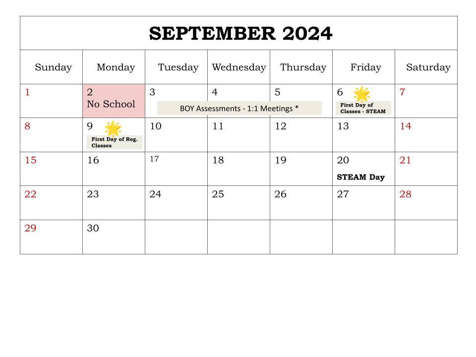 September Calendar Young Scholars Academy