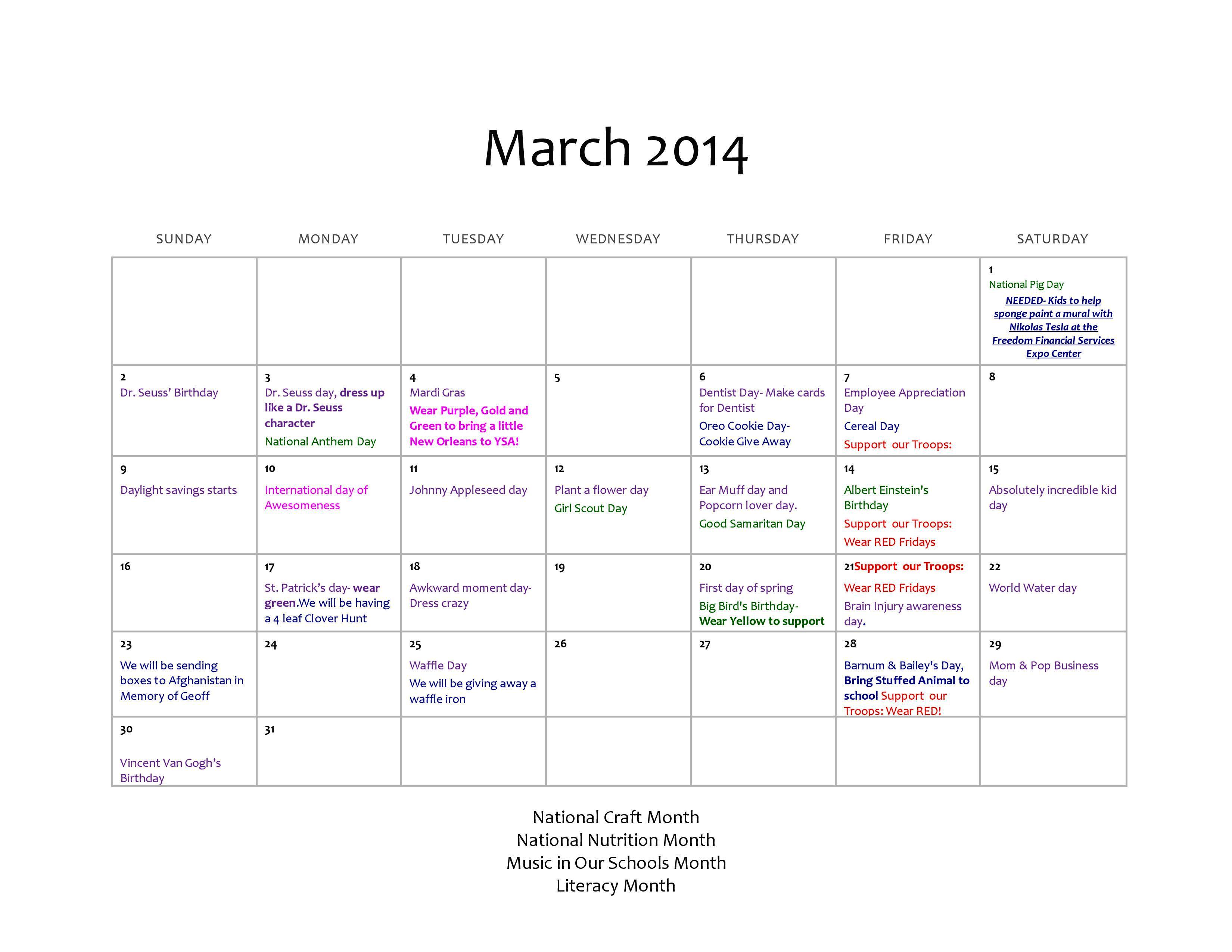 Young Scholars Academy 03 14 Calendar Young Scholars Academy