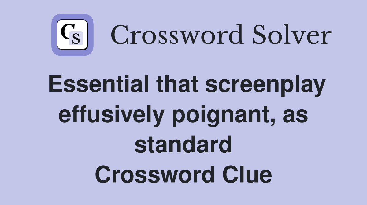 Essential that screenplay effusively poignant as standard Crossword