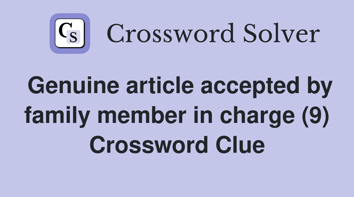Genuine article accepted by family member in charge (9) Crossword