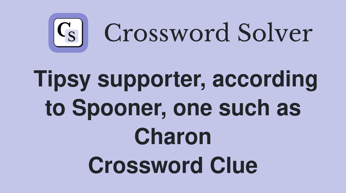 Tipsy supporter according to Spooner one such as Charon Crossword