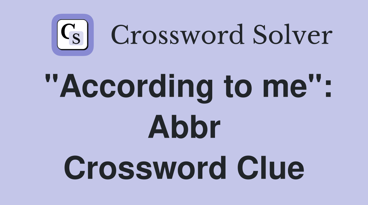 quot According to me quot : Abbr Crossword Clue Answers Crossword Solver