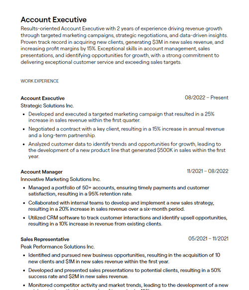 Mid Level Account Executive Resume Example Formatting Tips