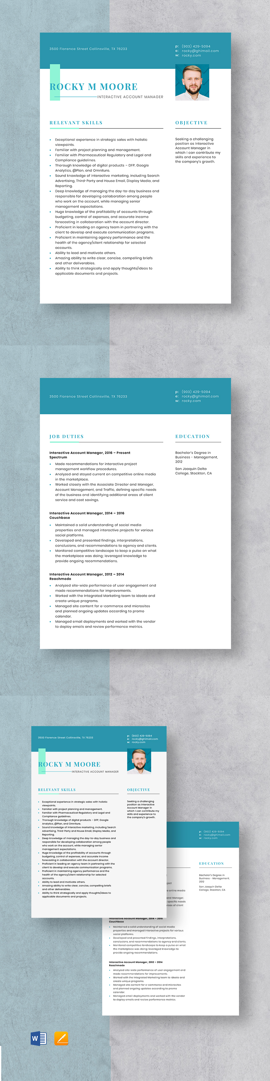 Free Interactive Account Manager Resume Template Word Apple Pages