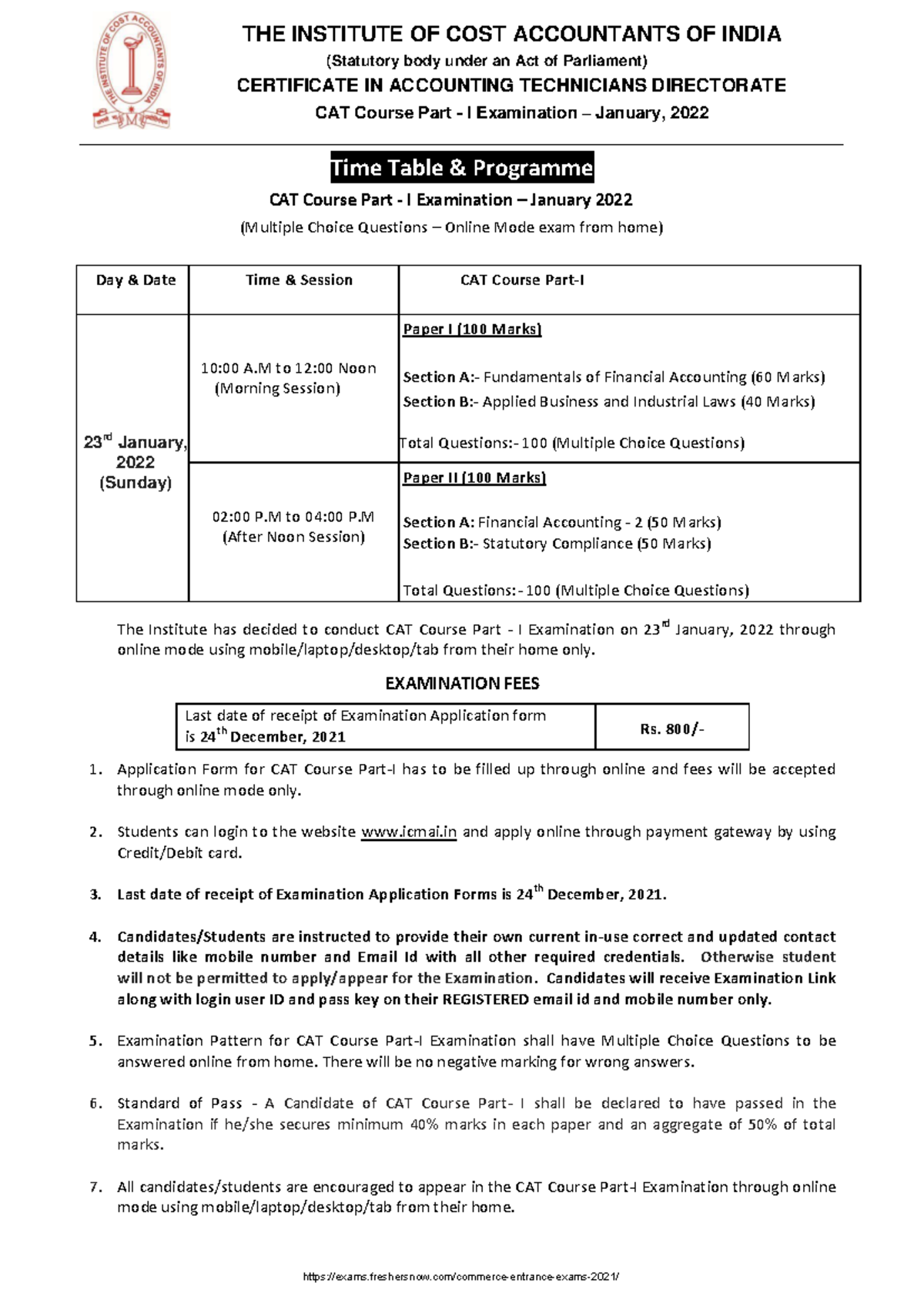 ICAI CAT: Application Syllabus Fees Exam Eligibility Jobs