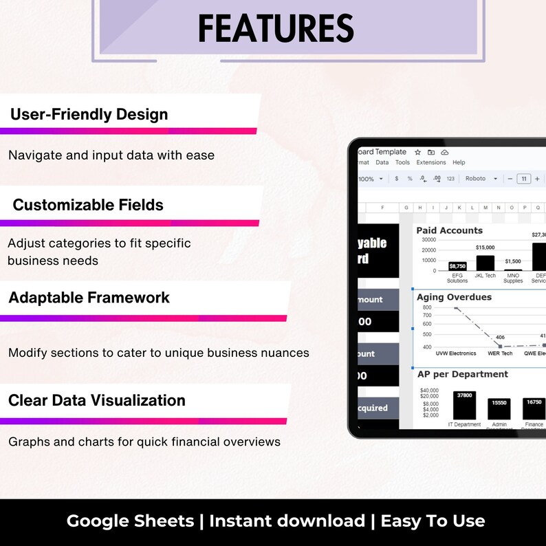 Finance Accounts Payable Dashboard Template in Excel Google Sheets