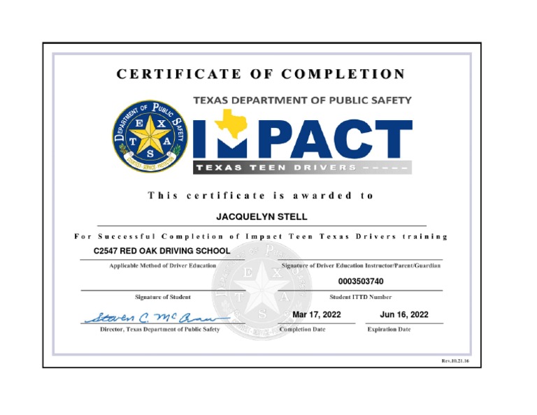 Certificate fdsfffffffffffff TEXAS DRIVER EDUCATION CERTIFICATE