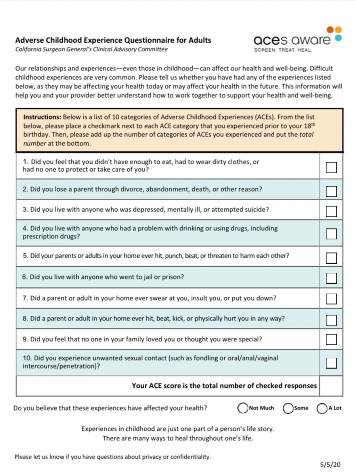 ACEs Questionnaire for Adults Adverse childhood experiences Mental