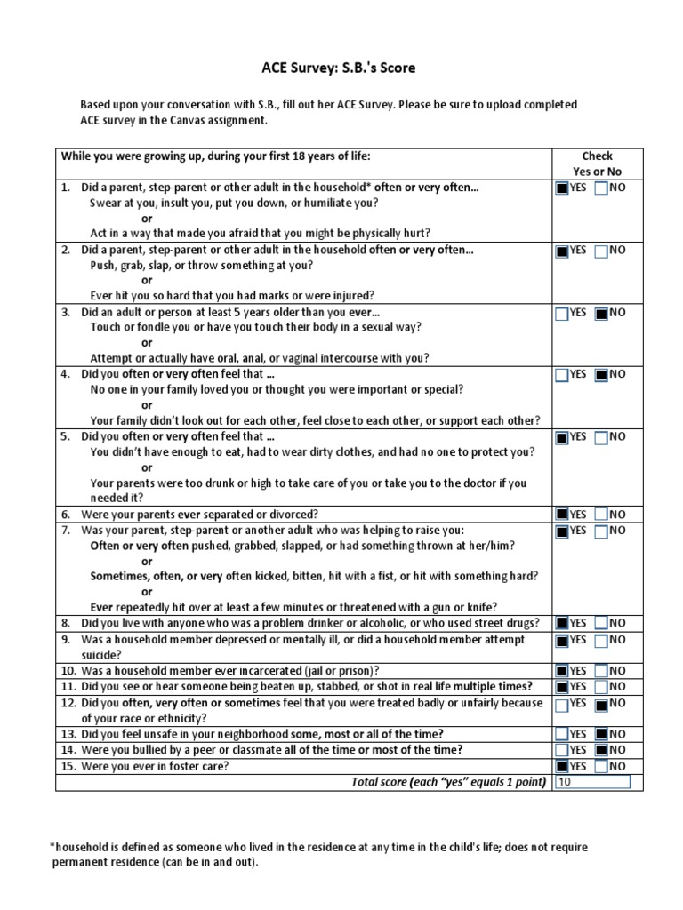 ACE Survey: S B #39 s Score: Total Score (Each quot Yes quot Equals 1 Point) PDF