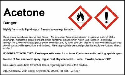 Acetone GHS Label Chemical Safety HCL Labels