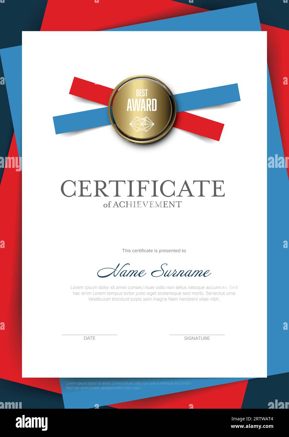 Modern blue red vertical certificate of achievement diploma template