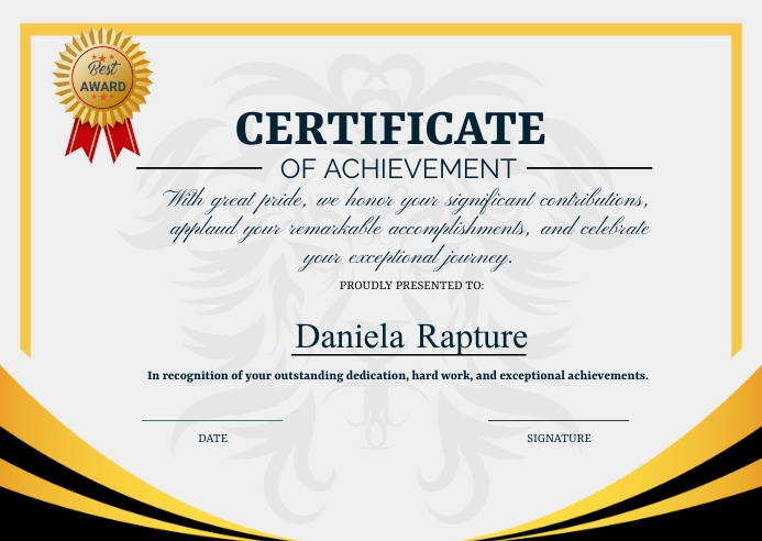 Yellow Certificate Achievement Diploma Document Word Template And