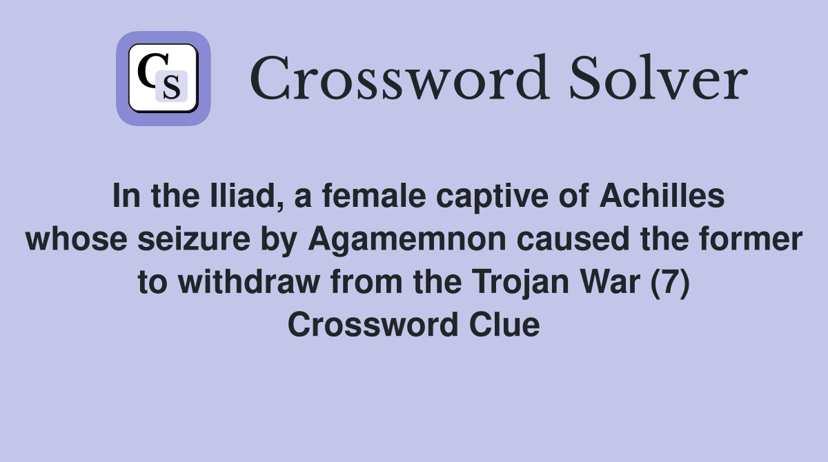 In the Iliad a female captive of Achilles whose seizure by Agamemnon