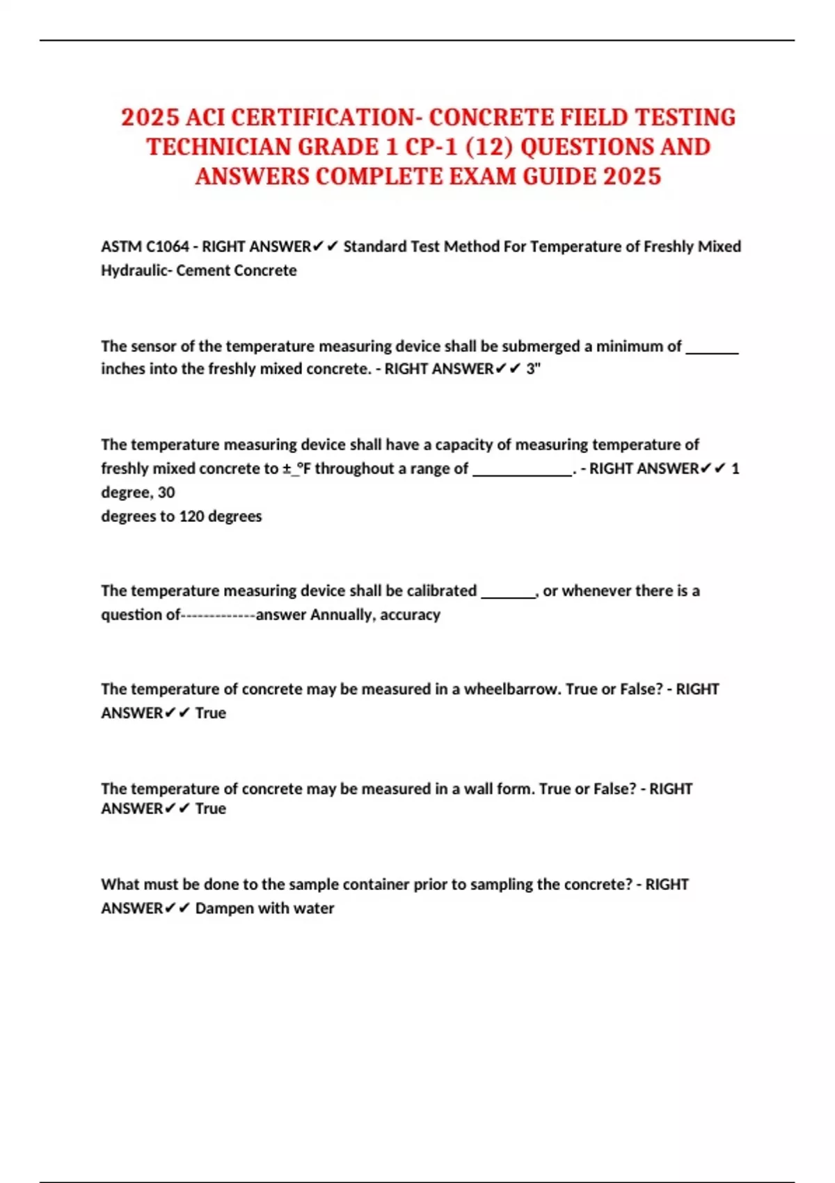 ACI Concrete Field Testing Technician Exam Questions Answers Bundle