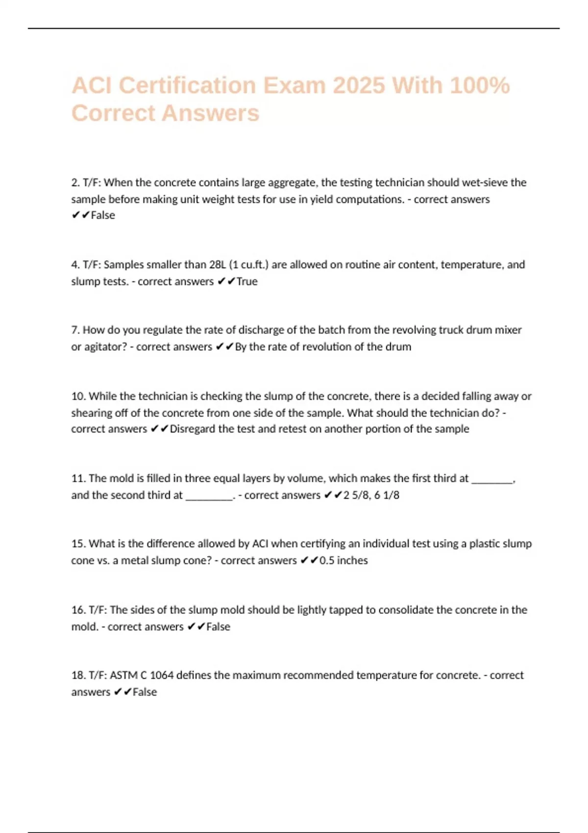 ACI Concrete Field Testing Technician Exam Q s And A s ACI