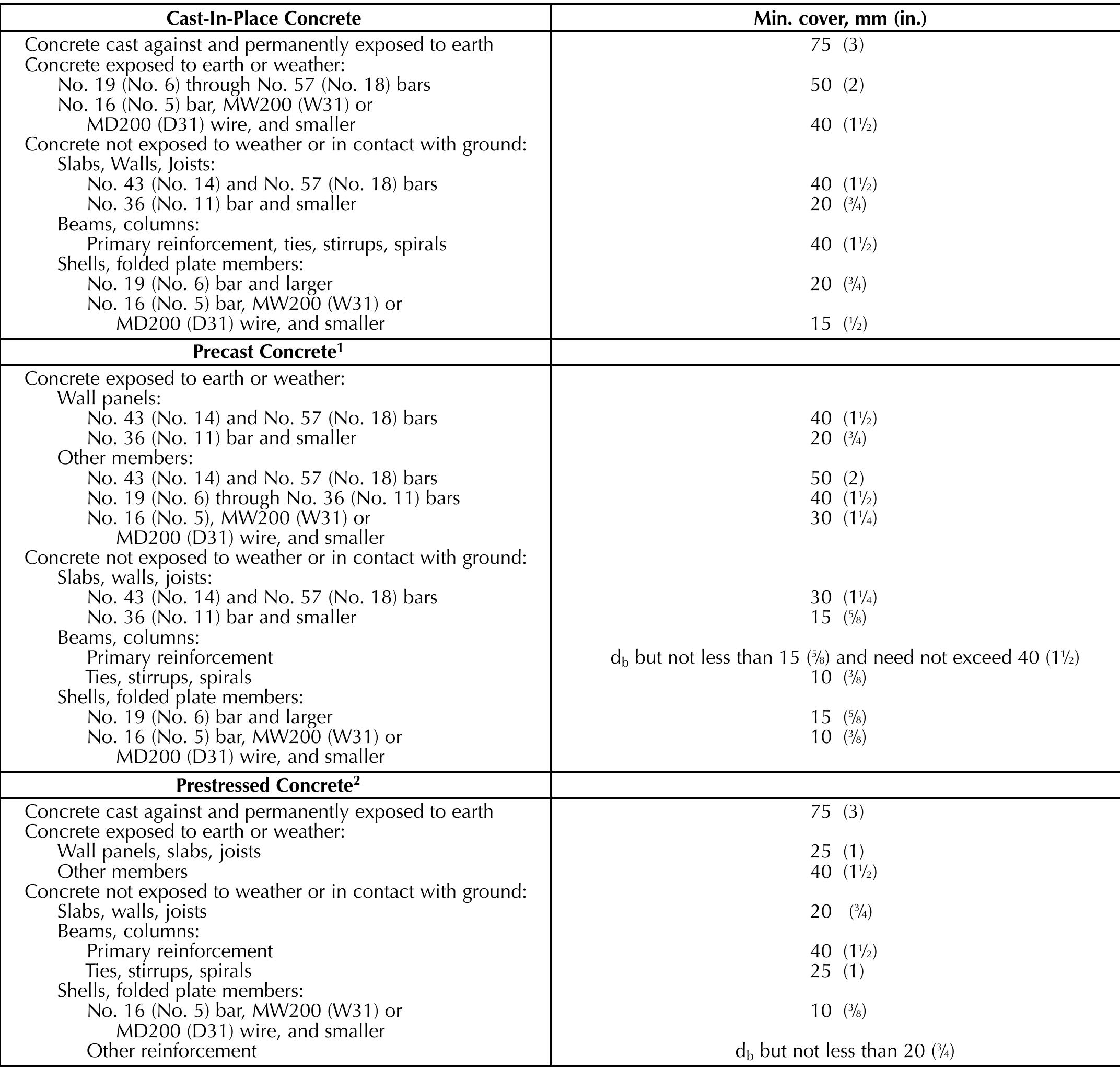 Minimum concrete cover requirements (aci 318) ™manufactured
