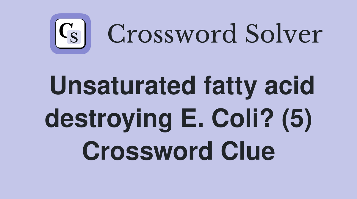 Unsaturated fatty acid destroying E Coli? (5) Crossword Clue Answers