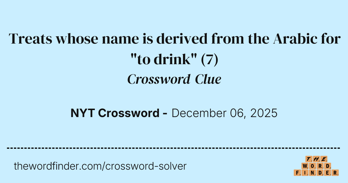 Treats whose name is derived from the Arabic for quot to drink quot Crossword