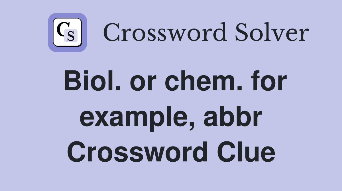 Biol or chem for example abbr Crossword Clue Answers Crossword