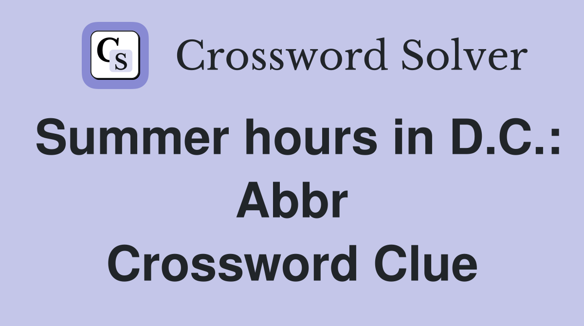 Summer hours in D C : Abbr Crossword Clue Answers Crossword Solver