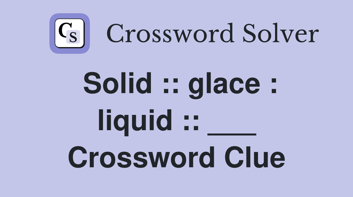 Solid :: glace : liquid :: Crossword Clue Answers Crossword Solver
