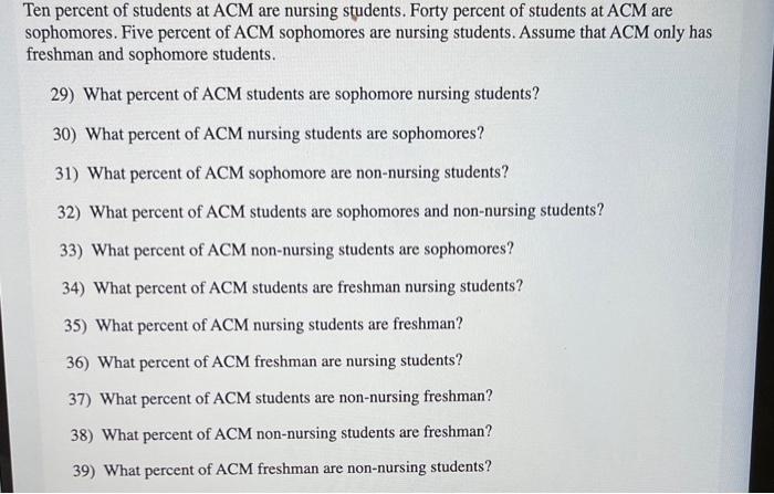 Solved Ten percent of students at ACM are nursing students Chegg com