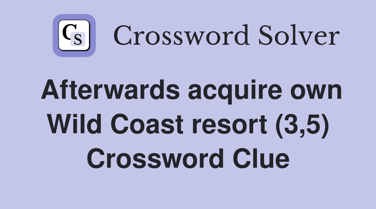 Afterwards acquire own Wild Coast resort (3 5) Crossword Clue Answers