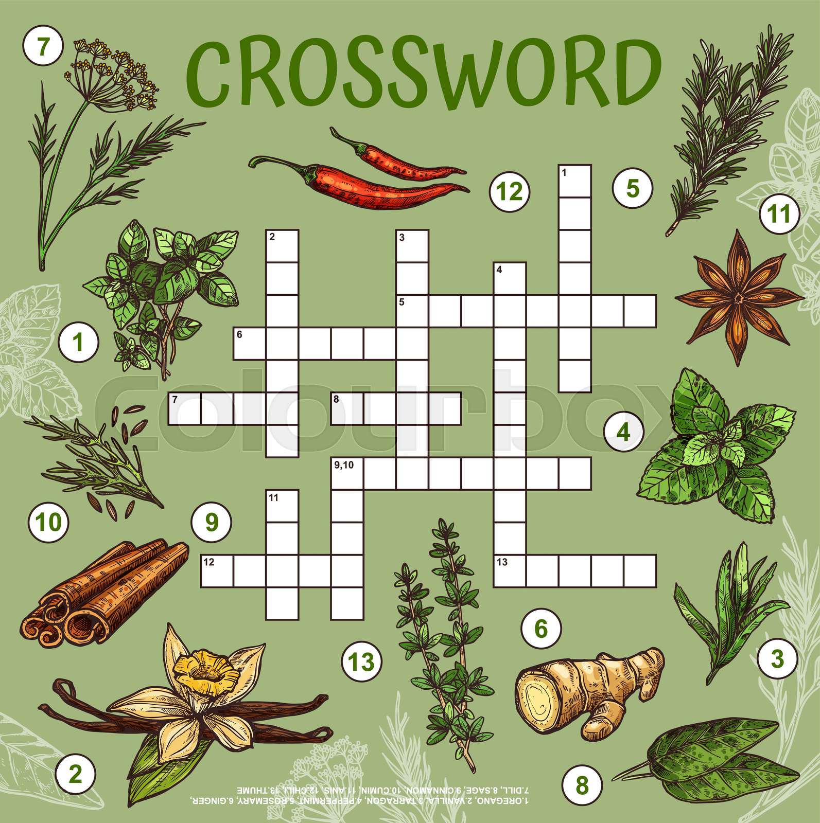 Using herbs seasonings and spices in a crossword puzzle Do a word